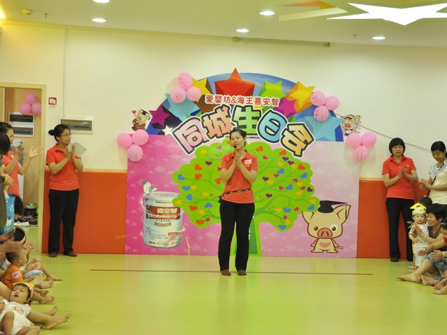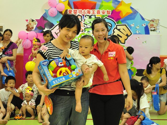 “爱婴坊&海王喜安智宝宝同城生日会”于8月4日在花都区花总店(新华路73号)二楼亲子俱乐部顺利举行啦。当天我们邀请1—3周岁8月份生日的宝宝前来共同庆贺,陪伴宝宝们度过一个难忘的生日。 生日会现场爱婴坊卡通形象代表“小宝丁叮”为每位到场的宝宝送上精美的生日礼物,同时,我们还设有互动游戏、亲子游戏、现场抽奖、、、、、、很多的活动,让每个到场的家庭都能开心而归。