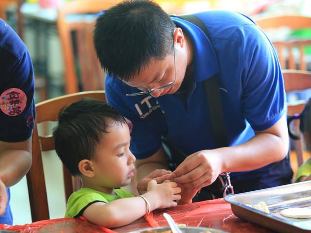 | 2014年6月21日第三届“粑粑Let’s go”在爱婴坊亲子俱乐部——心怡小筑顺利举行。由于早上六点半还下着大雨,估计一个小时内不会停雨,这为粑粑和小朋友出行带来不便,同时为了不让粑粑和小朋友失落,保持参与热情,我们坚持继续举行活动,将活动集中时间由8点改为9点。果然到了集中的时候雨停了,天气非常凉快。 当天活动粑粑和小朋友都积极参与活动,让粑粑在互动游戏、寻宝游戏、包饺子、手工DIY、世界杯齐齐参与中可以近距离观察小朋友的长处、兴趣、爱好,增加亲子关系。以下是这次活动图片: |
