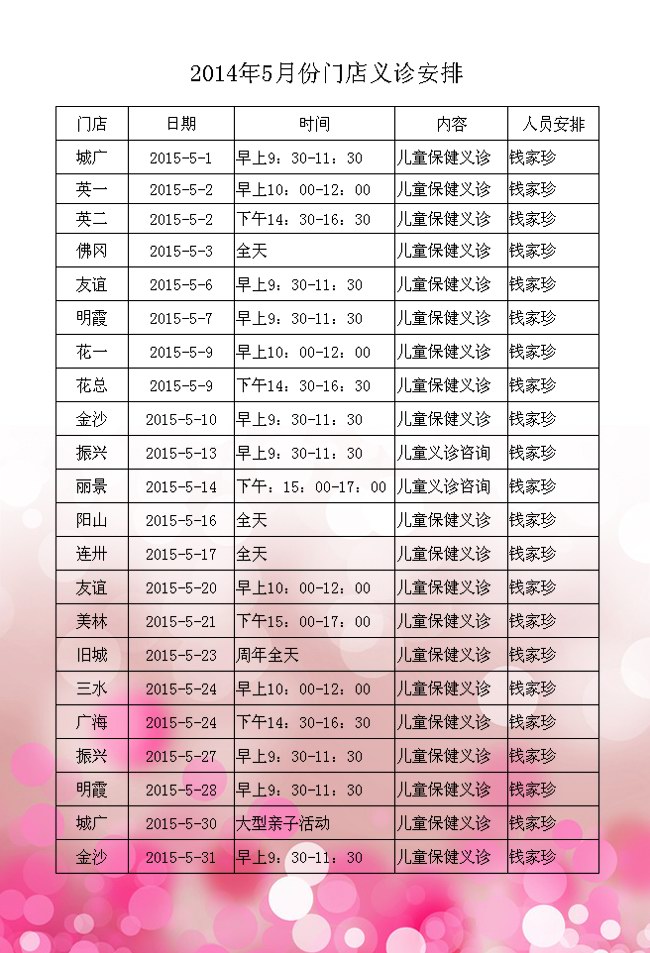 爱婴坊5月门店义诊安排