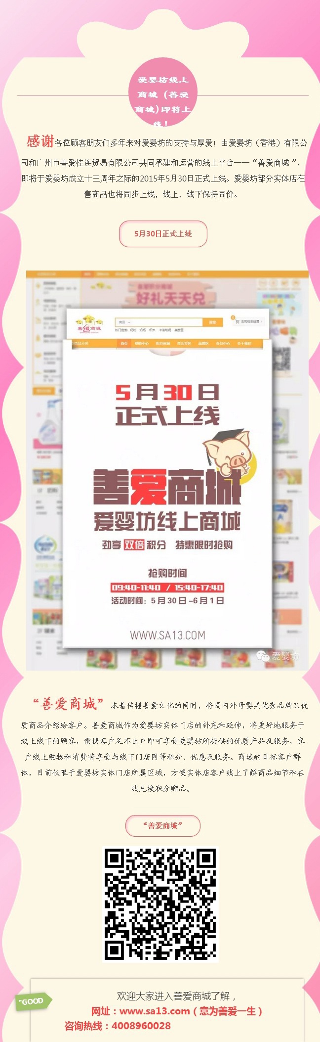 【最新消息】爱婴坊线上商城(善爱商城)即将于5月30日正式上线啦!