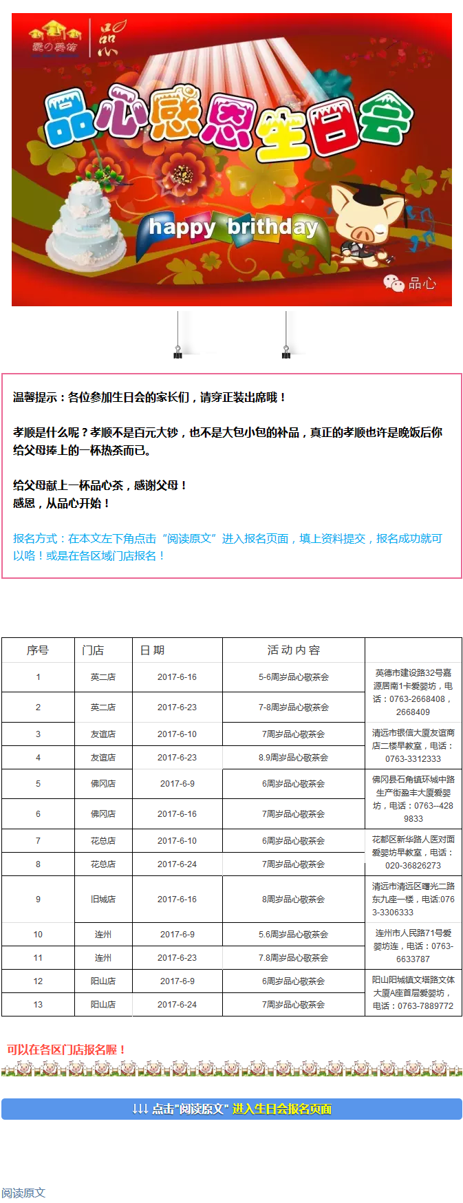 2017年6月份品心感恩生日会时间表,快来参加喔