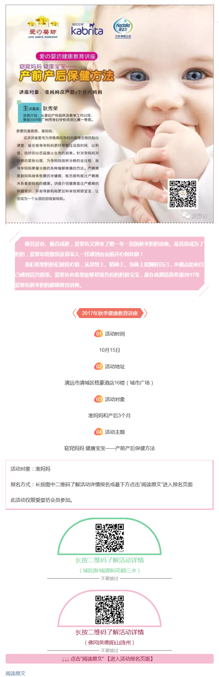 2017年秋季健康教育讲座(产前产后保健方法)