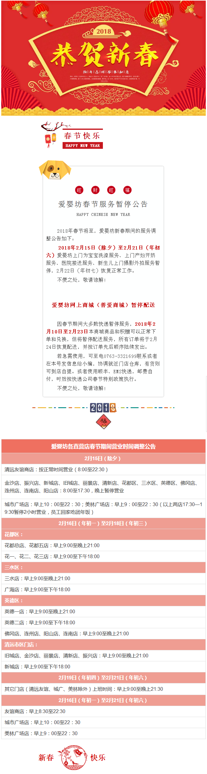 2018年春节爱婴坊部分服务暂停及各门店营业时间调整的公告