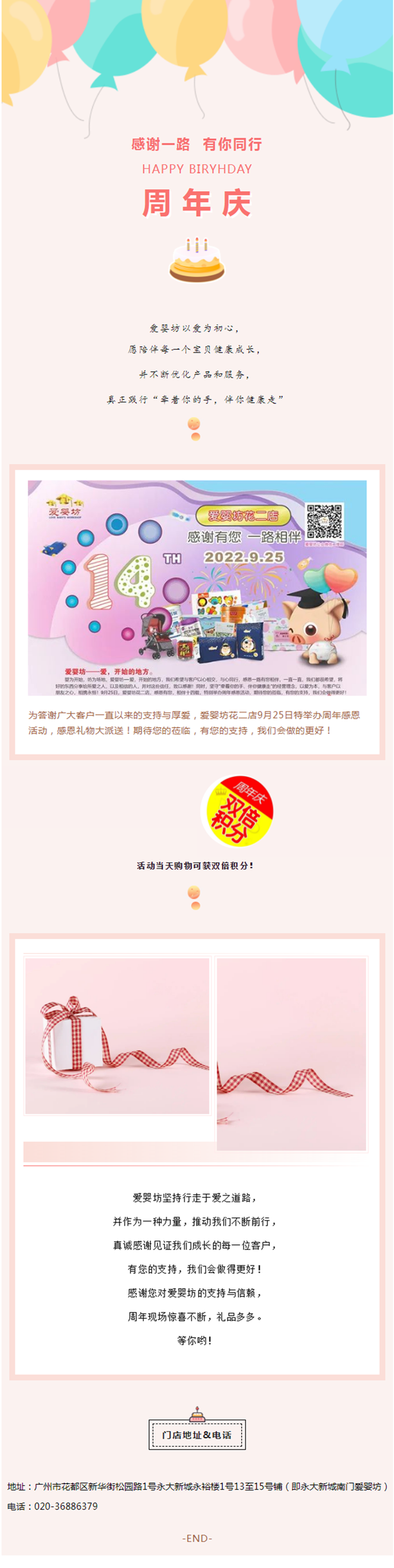 【爱婴坊花二店】9月25日与心同行,感恩有您周年庆