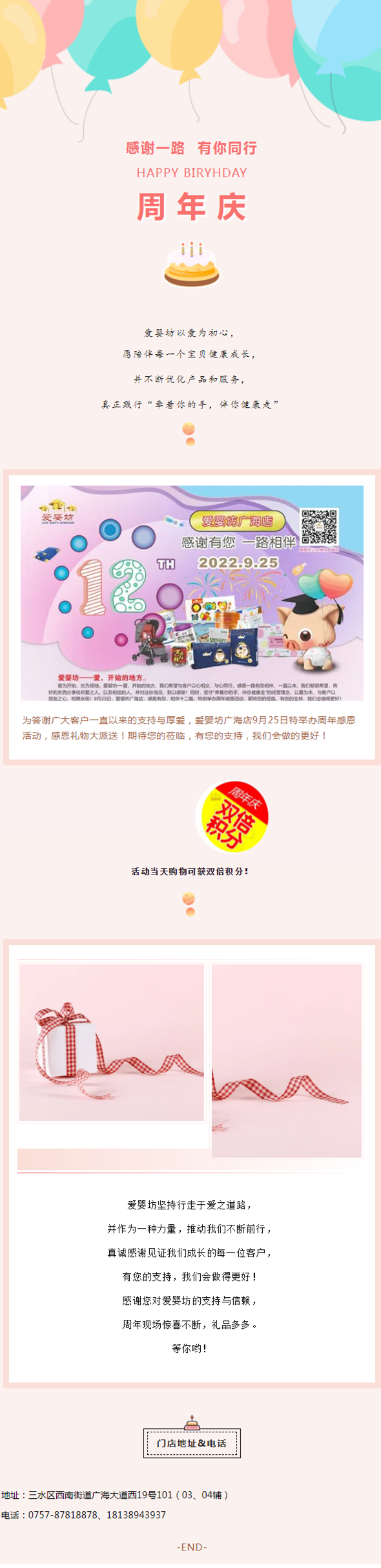 【爱婴坊广海店】9月25日与心同行,感恩有您周年庆