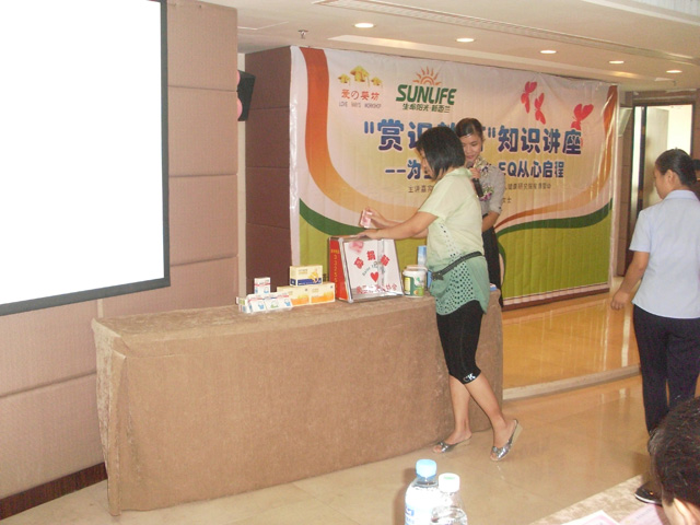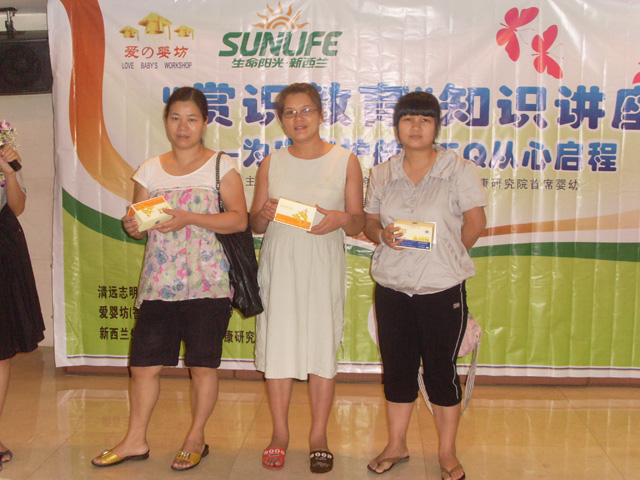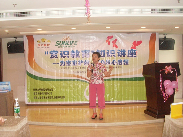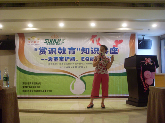 | 骄阳似火、桂花烂漫的八月,23日在清远志明商贸有限公司的支持下,我们很荣幸邀请到:新西兰生命阳光国际婴幼儿健康研究院首席婴幼儿心理辅导专家——黄诺嫚女士,与我们共聚花都新凤凰酒店,当天举行一场别开生面的“赏识教育”知识讲座。在黄诺嫚女士幽默、睿智、亲切的分享中,为每位家长上了一节生动的教育课程,这次讲座的主要目的是为宝宝护航、从心启蒙宝宝的EQ成长,对很多常见的亲子教育中出现的问题给予解决的方案。讲座中有为爱婴坊爱心协会中需要帮助的家庭和孩子们筹集爱心而进行的拍卖会、有互动的抽奖环节、 还有互动问答,家长们都踊跃参与。在互动问答环节中,很多家长争先地提出了很多小朋友在成长中遇到的问题,黄诺嫚女士都详细、生动地为大家解除了困惑,让每位家长懂得了问题所在,并启发家长怎样才能成为宝宝人生中最优秀的教练。 |