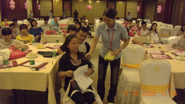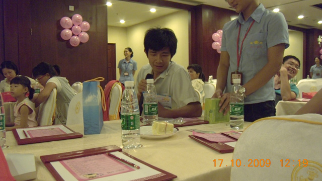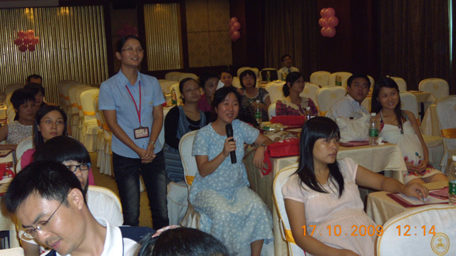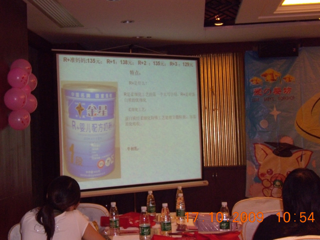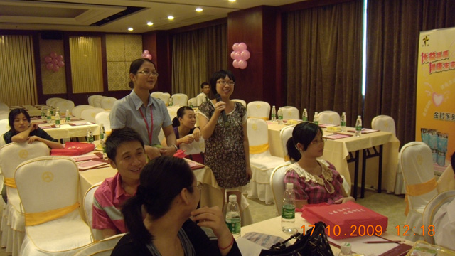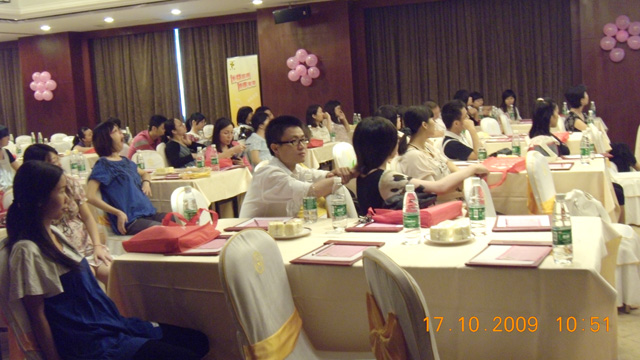 金秋十月,迎来祖国六十华诞,更迎来了爱婴坊秋季妈妈讲座。2009年10月17日三水地区秋季妈妈班“孕期情绪管理之妈妈宝宝做运动”专题讲座在佛山市三水区西南广海大道中39号花园酒店三楼会议室顺利举行。此次讲座吸引了三水地区众多位准妈咪的热情参与,此次讲座更得到了黑龙江哈尔滨金星乳业有限公司的鼎力赞助。同时很荣幸邀请到广州市孕妇学校、母婴俱乐部主讲老师——耿秀荣医生担任主讲嘉宾,耿老师以浅显易懂的言语,将孕妇在孕产期中有关情绪管理的问题及胎教运动知识传授给三水地区众多准妈妈,受到现场听众的热烈欢迎和一致好评。在讲座过程中安排中互动问答环节、互动抽奖环节;感谢各位忠实的客户对爱婴坊一如既往的支持与关注,有你们的关注,我们会越做越好。