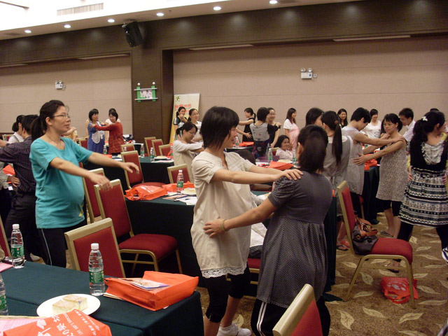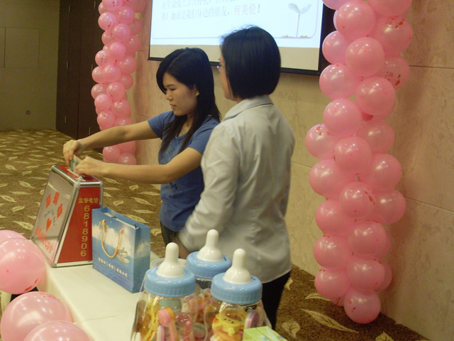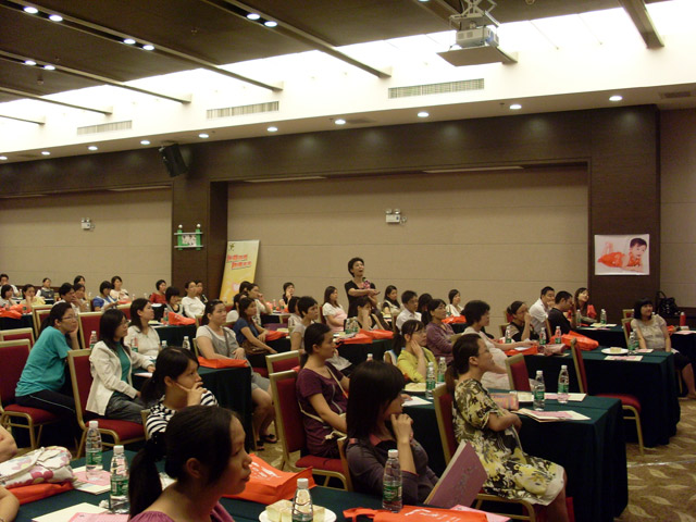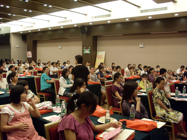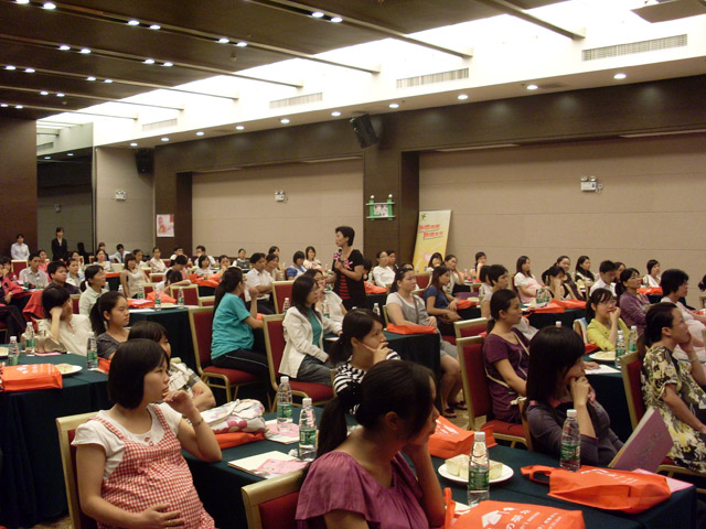 金秋十月,迎来祖国六十华诞,更迎来了爱婴坊秋季妈妈讲座。2009年10月24日佛冈地区秋季妈妈班“孕期情绪管理之妈妈宝宝做运动”专题讲座在清远市佛冈县石角镇北园路胜国际温泉花园二楼多功能厅顺利举行。此次讲座吸引了佛冈地区众多位准妈咪的热情参与,此次讲座更得到了黑龙江哈尔滨金星乳业有限公司的鼎力赞助。同时很荣幸邀请到广州市孕妇学校、母婴俱乐部主讲老师——耿秀荣医生担任主讲嘉宾,耿老师以浅显易懂的言语,将孕妇在孕产期中有关情绪管理的问题及胎教运动知识传授给佛冈地区众多准妈妈,受到现场听众的热烈欢迎和一致好评。在讲座过程中特别地安排了一场感人的现场义卖,义卖是通过拍卖形式进行,准妈妈们一次次积极勇跃的举手,让现场所有的客户朋友、合作厂商以及工作人员都由衷的感动。此次义卖所得的款项我们将通过爱婴坊爱心协会转交给患有红斑狼疮的何美伦,感谢各位忠实的客户对爱婴坊一如既往的支持与关注,有你们的关注,我们会越做越好。