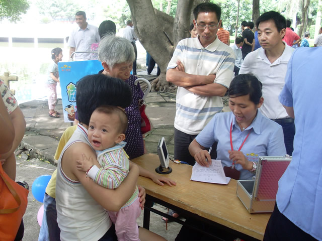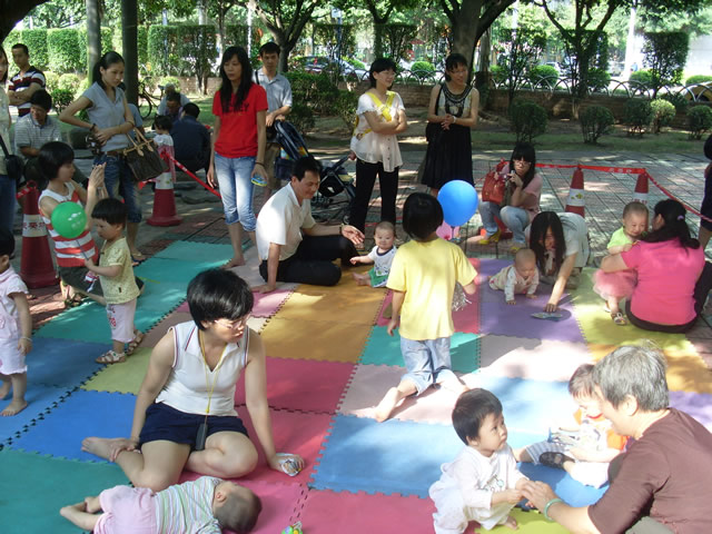 爱の婴坊“骄阳盛夏迎六一”大型亲子活动于2010年5月23日在三水区西南镇文化公园正门顺利举行。虽然当天天气比较炎热,但我们都得到很多“小粉丝“的支持,活动现场我们为0—3岁的宝宝设置了4个亲子活动区域,为家长与宝宝提供一个相互交流的平台。同时,在现场我们还设有微量元素检测、小宝丁叮为各位宝宝派发礼物,与在场的宝宝共度开心的一刻