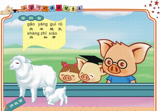 爸爸讲完故事后,对小丁叮说:“你看小羊都知道孝敬父母,我们更应该孝敬父母了。”小丁叮对爸爸说:“我懂了。”