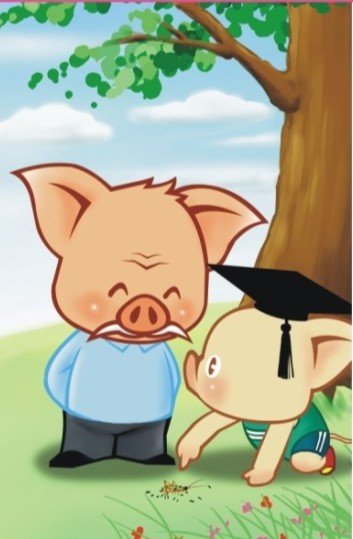 当他坐在一颗大树下玩石子时,小丁叮突然发现有好大一群蚂蚁围着一只蝗虫,连忙喊:“爷爷快来看,这里有好多蚂蚁在和一只大虫子打架呢。”