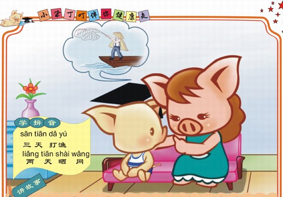 丁叮报名参加了跆拳道班,一开始丁叮很有兴趣,每次都很积极,可是最近他总是找借口推脱,妈妈看在眼里不说话。到了中午,丁叮饿了要吃饭,妈妈却说:“我今天也不想做饭,明天再吃吧。”这时候丁叮的肚子已经咕噜叫了,妈妈拉着丁叮的手说:“做任何事情都不能只凭一时的兴趣,如果妈妈也像你这样,那我们岂不是都要饿肚子吗?”接着妈妈讲了一个故事。