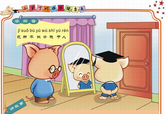 从前啊有一条大黄狗,跑进了一个全是镜子的房间,看见好多大黄狗都在恶狠狠地看着它,他马上就露出牙齿叫了起来,结果他发现所有的狗都朝它叫,它朝它们扑了过去,那些大狗也马上扑了过来。大黄狗吓坏了,夹着尾巴立刻逃走了。”讲完爸爸问丁叮:“你觉得这大黄狗是不是很笨啊,如果他友好一点,是不是大家也会对他好呢?”“明天你看见小朋友,要友好打招呼,和他们交朋友。你怎么对待别人的,别人也会怎么对你。”丁叮用力地点了点小脑袋。